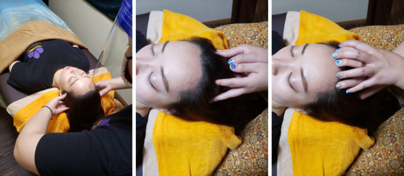 硬くなった頭の筋肉をしっかりもみほぐし、血液循環を改善させ、コリや痛みの原因になる老廃物を排出させて偏頭痛や、目の疲れに働きかけます。